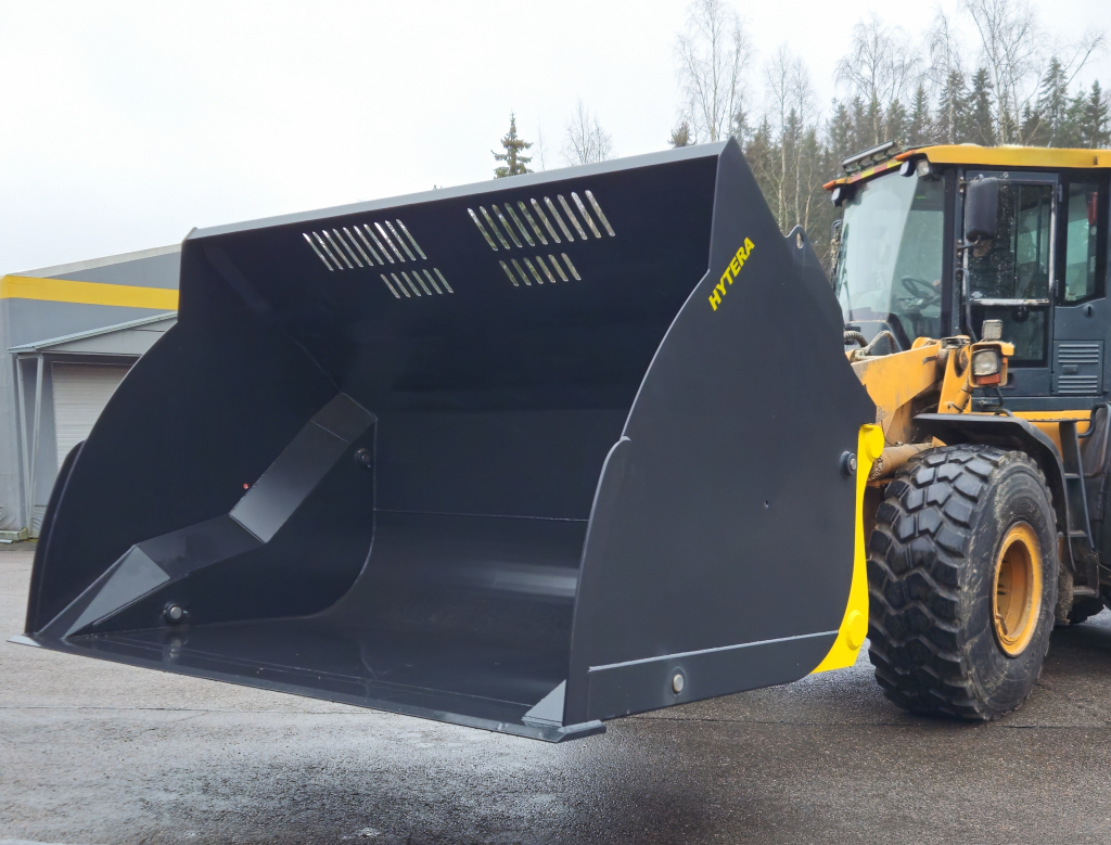Hytera korkealta kippaava kauha on suunniteltu kevyen materiaalin lastaamiseen korkeisiin autoihin. Saatavilla on kaksi mallia, keskisylinterimalli kuivalle ja rakeiselle irtomateriaalille tai sivusylinterimalli märälle ja takertuvalle materiaalille.